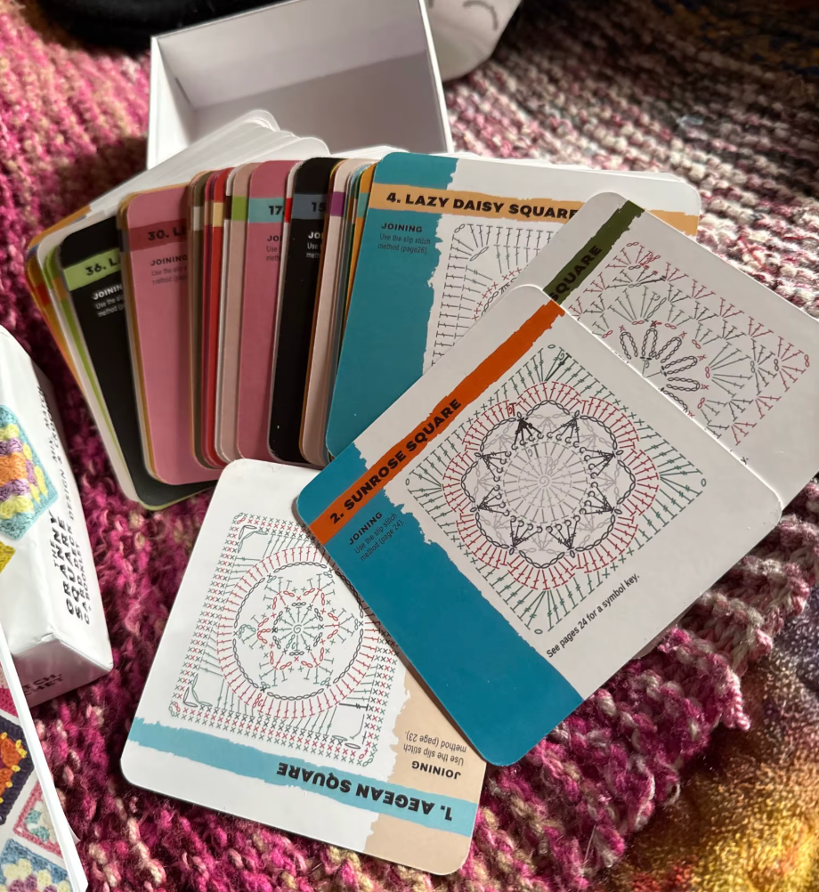 Discover a charming, travel-size pack of 50 vibrant crochet square cards to combine, customize, and craft your own unique patterns with ease.